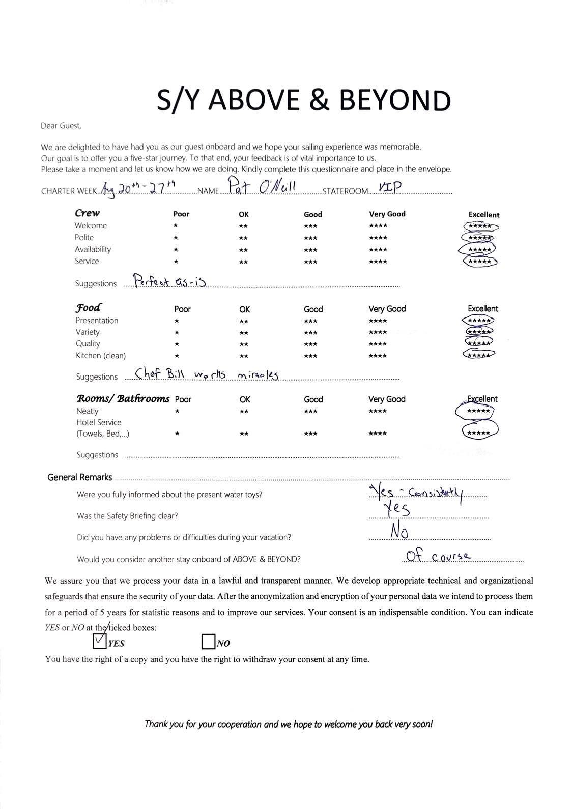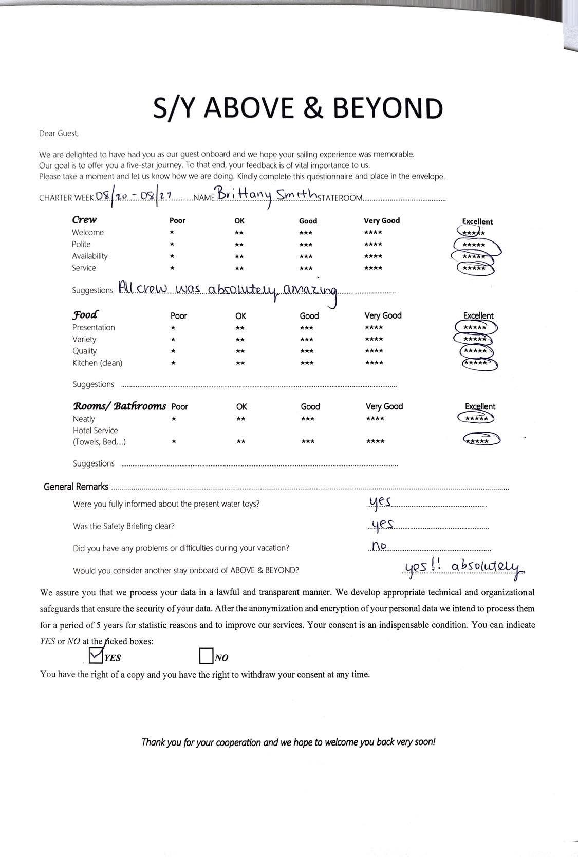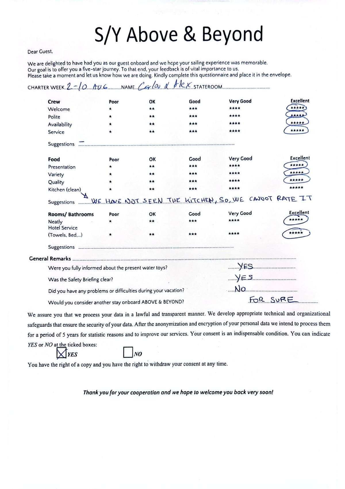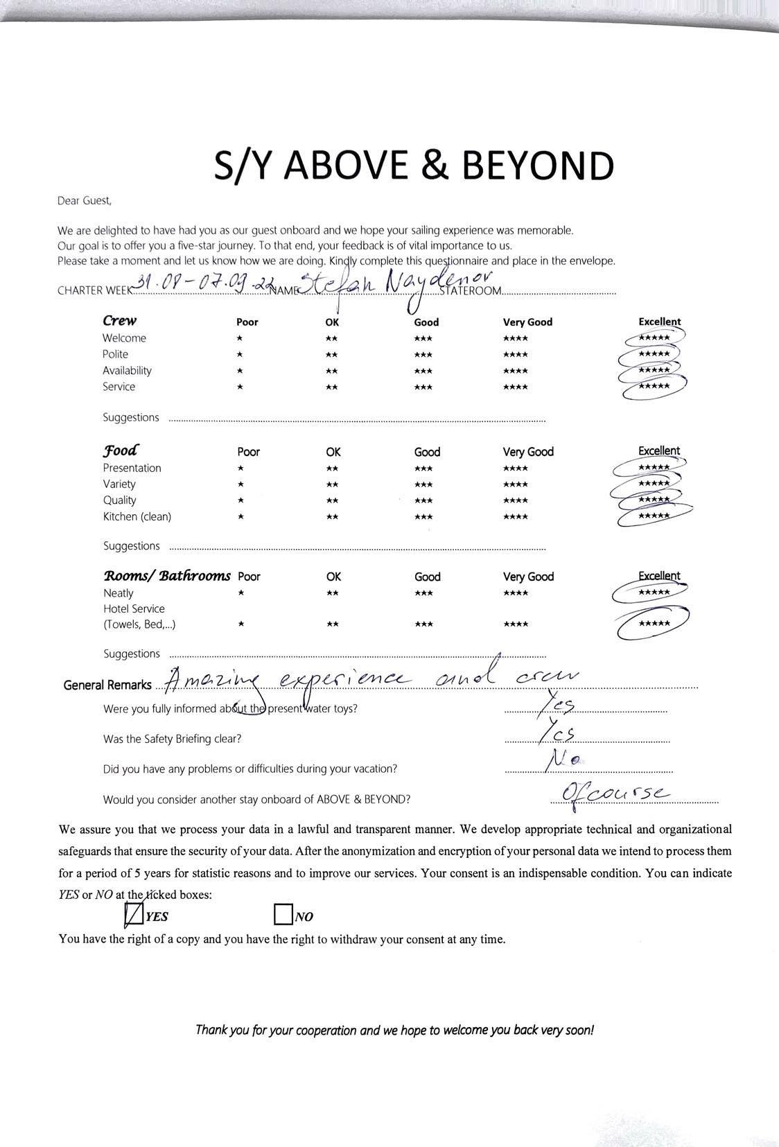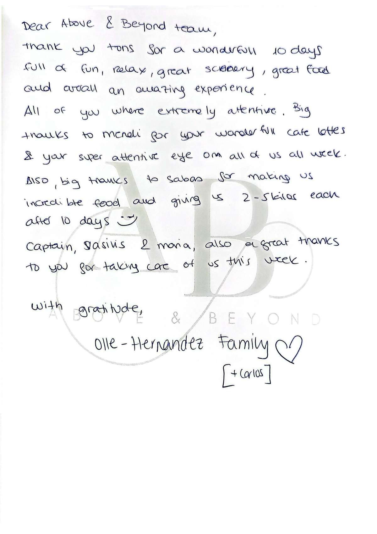 For a sailing catamaran like ABOVE & BEYOND, the expected APA is 20% to 35% of the charter price (€11,000 - €19,250), making the charter cost €66,000 to €74,250. Exact amount will be confirmed after inquiry.