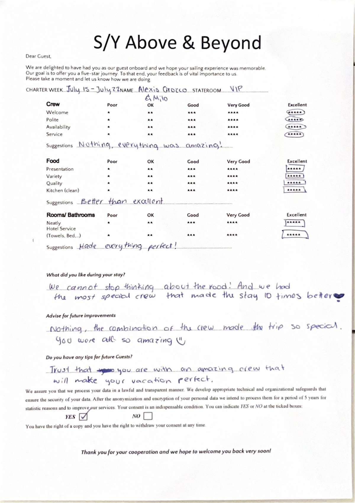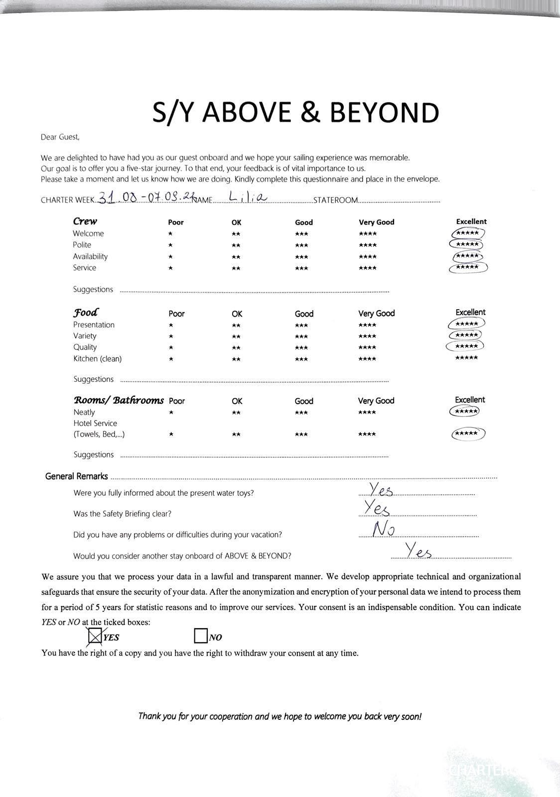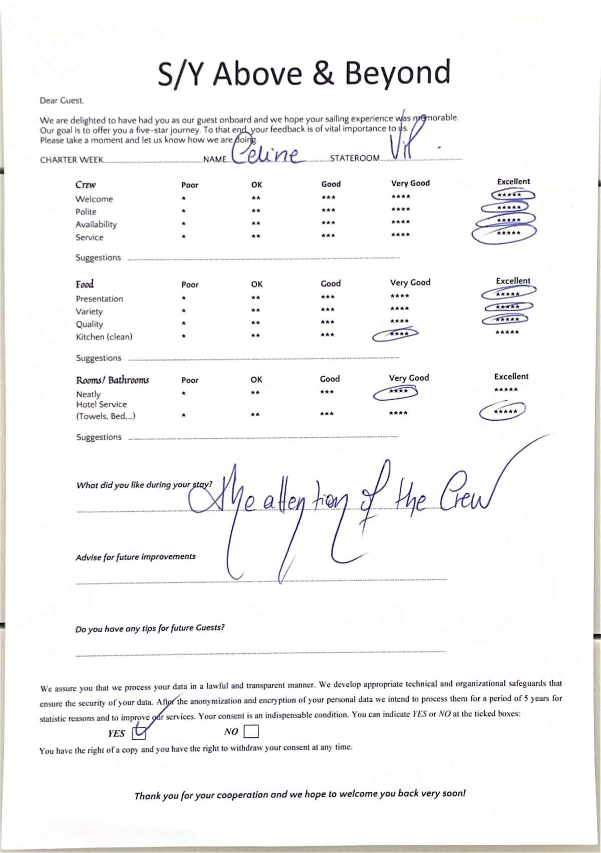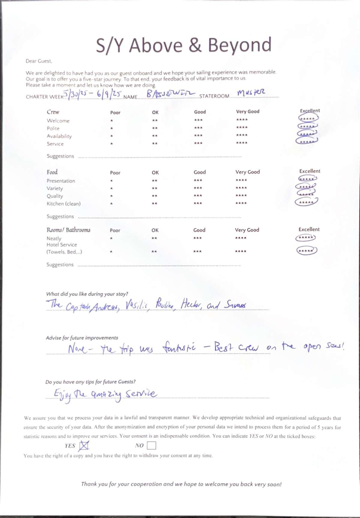 Poly brings a wealth of hospitality experience to the Above & Beyond crew, having spent the last three seasons as a hostess on motor yachts. In the winter months, she honed her skills as a head waitress and shift responsible in Athens' bustling restaurant scene. Prior to her yachting career, Poly worked in various hotels, learning everything there is in hotel service, and refining her customer service expertise. Armed with a Le Monde certificate in Food & Beverage Management from Athens, she is adept at ensuring seamless guest experiences and satisfaction. She is efficient, organized, a team player and adaptable. Fluent in both Greek and English, Poly's versatile communication skills and extensive background in hospitality make her a valuable asset aboard Above & Beyond for the upcoming season.
