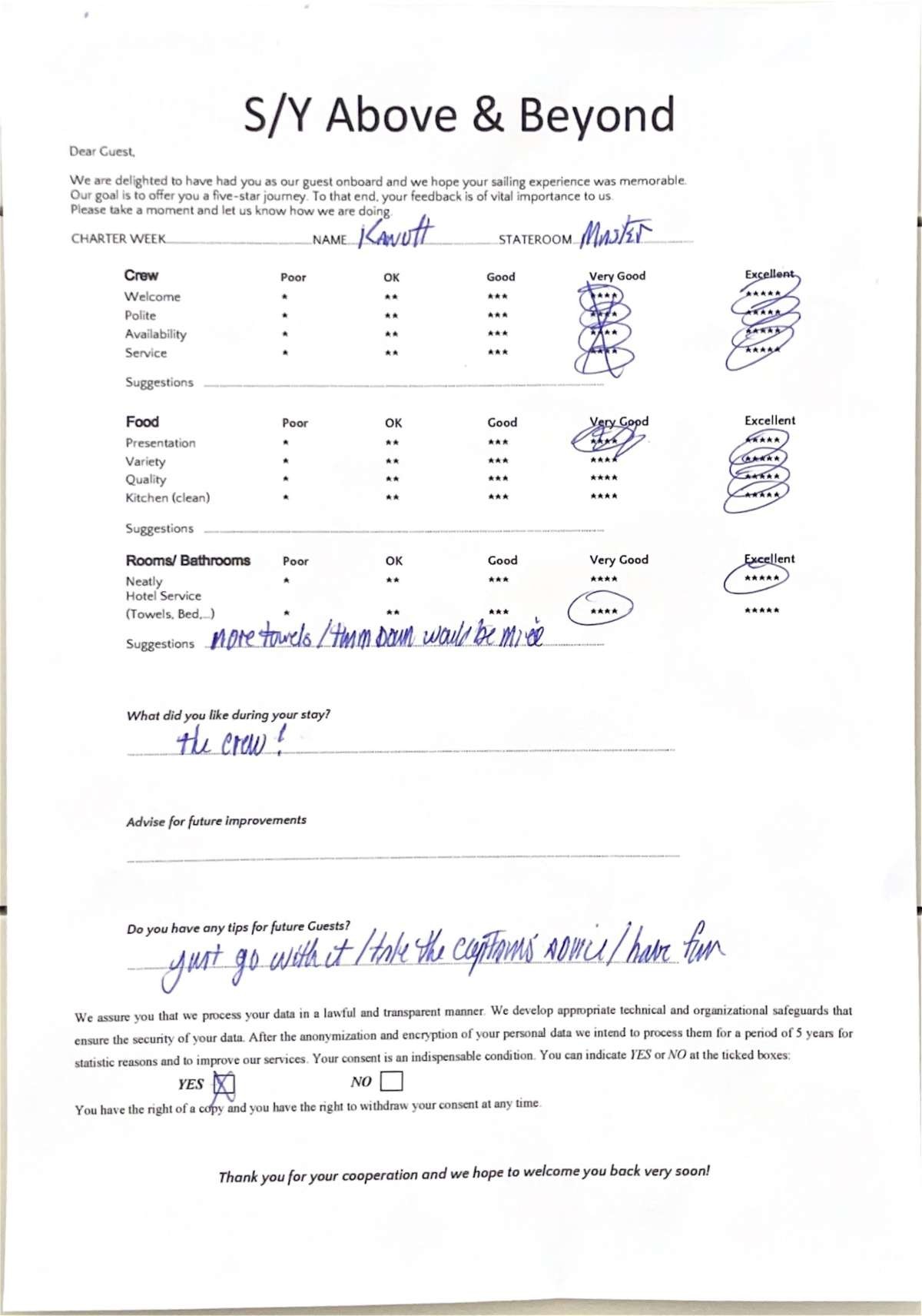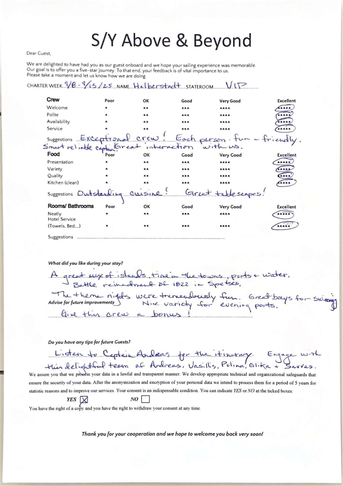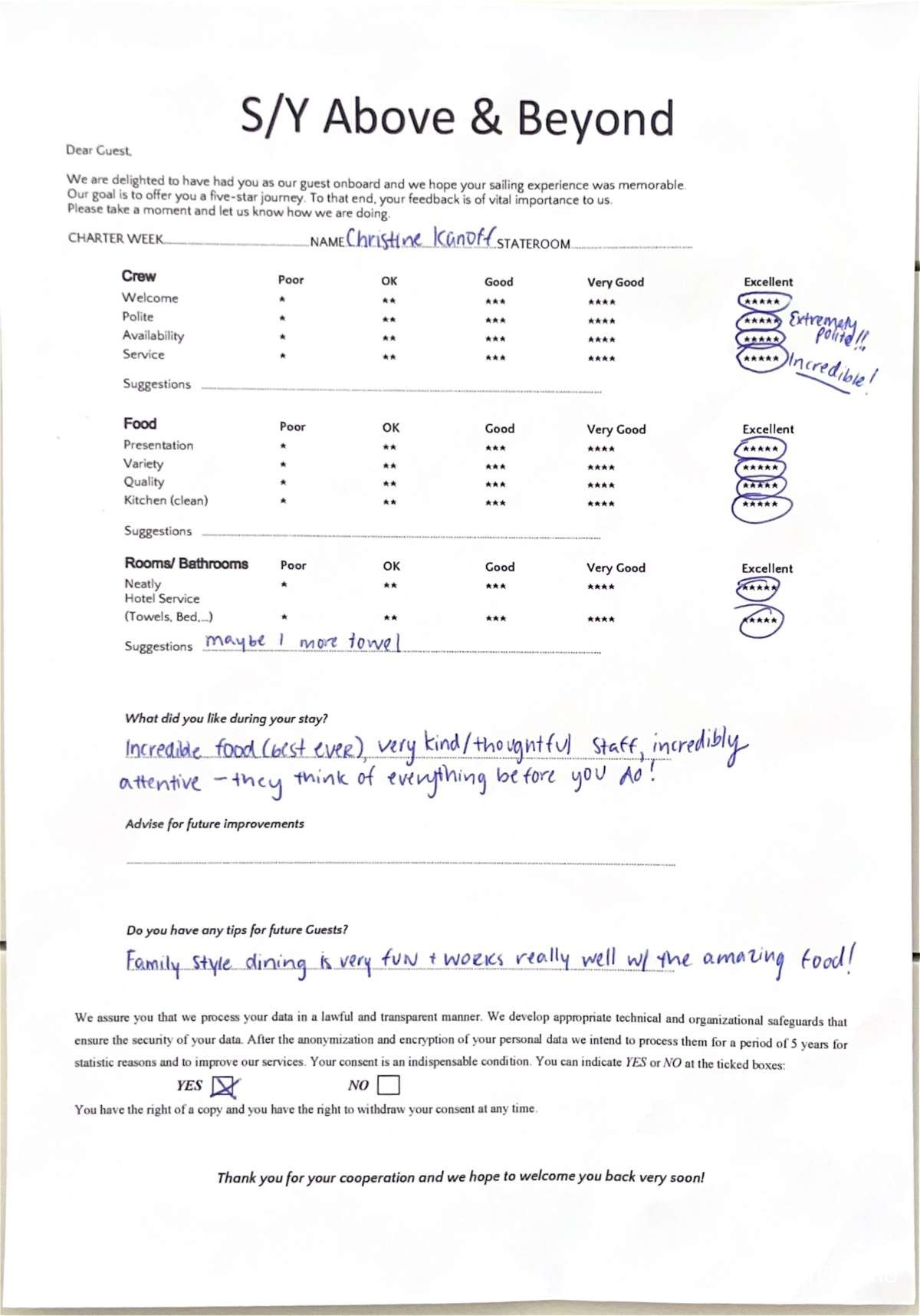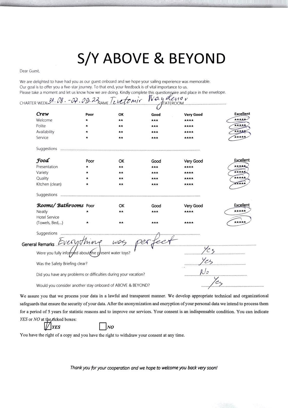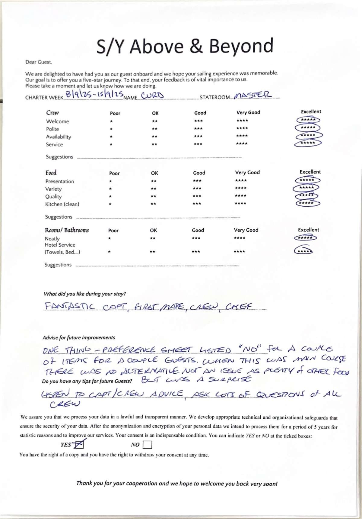 Poly brings a wealth of hospitality experience to the Above & Beyond crew, having spent the last three seasons as a hostess on motor yachts. In the winter months, she honed her skills as a head waitress and shift responsible in Athens' bustling restaurant scene. Prior to her yachting career, Poly worked in various hotels, learning everything there is in hotel service, and refining her customer service expertise. Armed with a Le Monde certificate in Food & Beverage Management from Athens, she is adept at ensuring seamless guest experiences and satisfaction. She is efficient, organized, a team player and adaptable. Fluent in both Greek and English, Poly's versatile communication skills and extensive background in hospitality make her a valuable asset aboard Above & Beyond for the upcoming season.