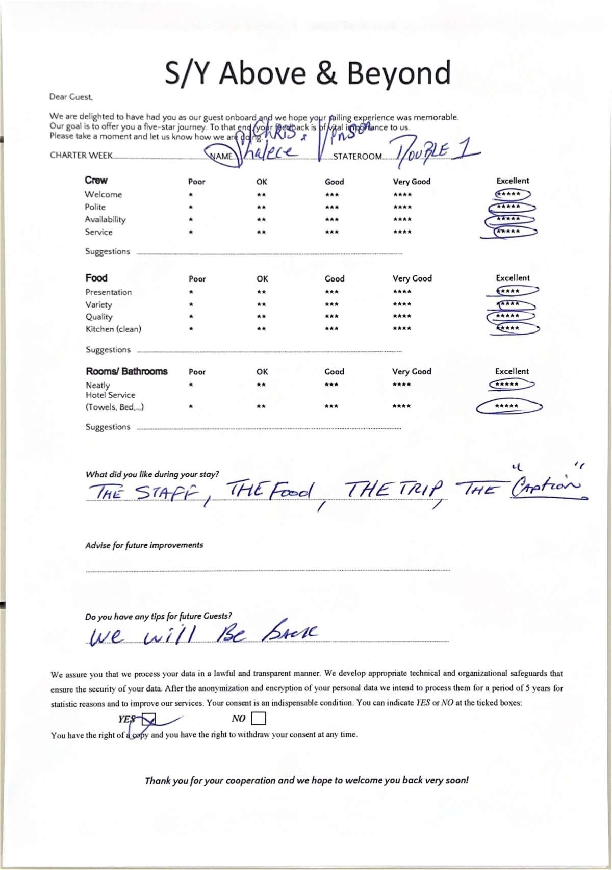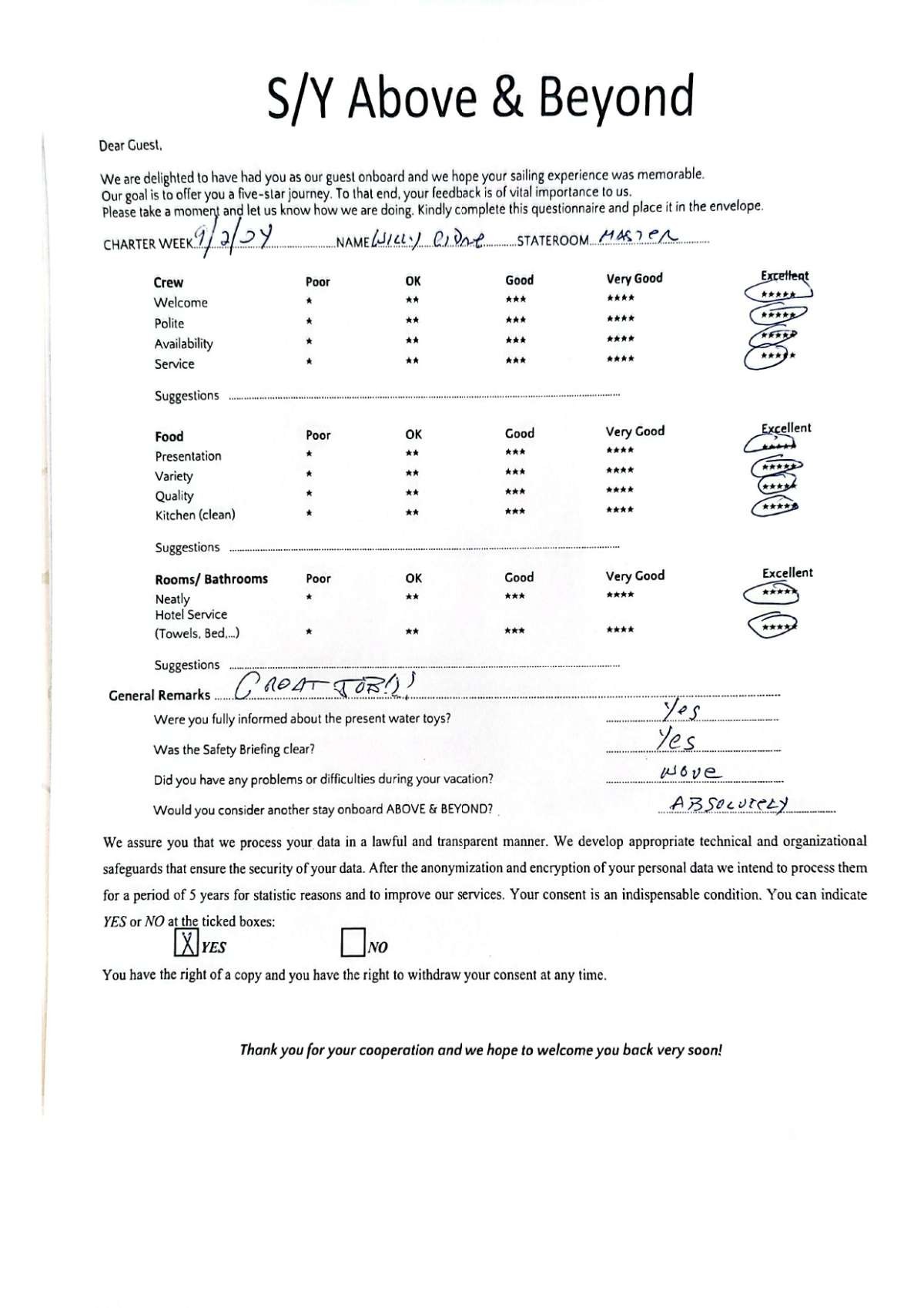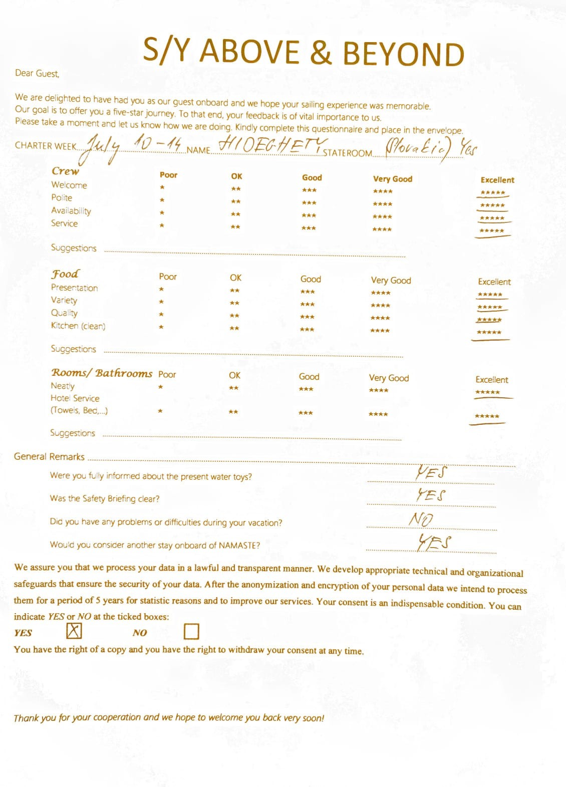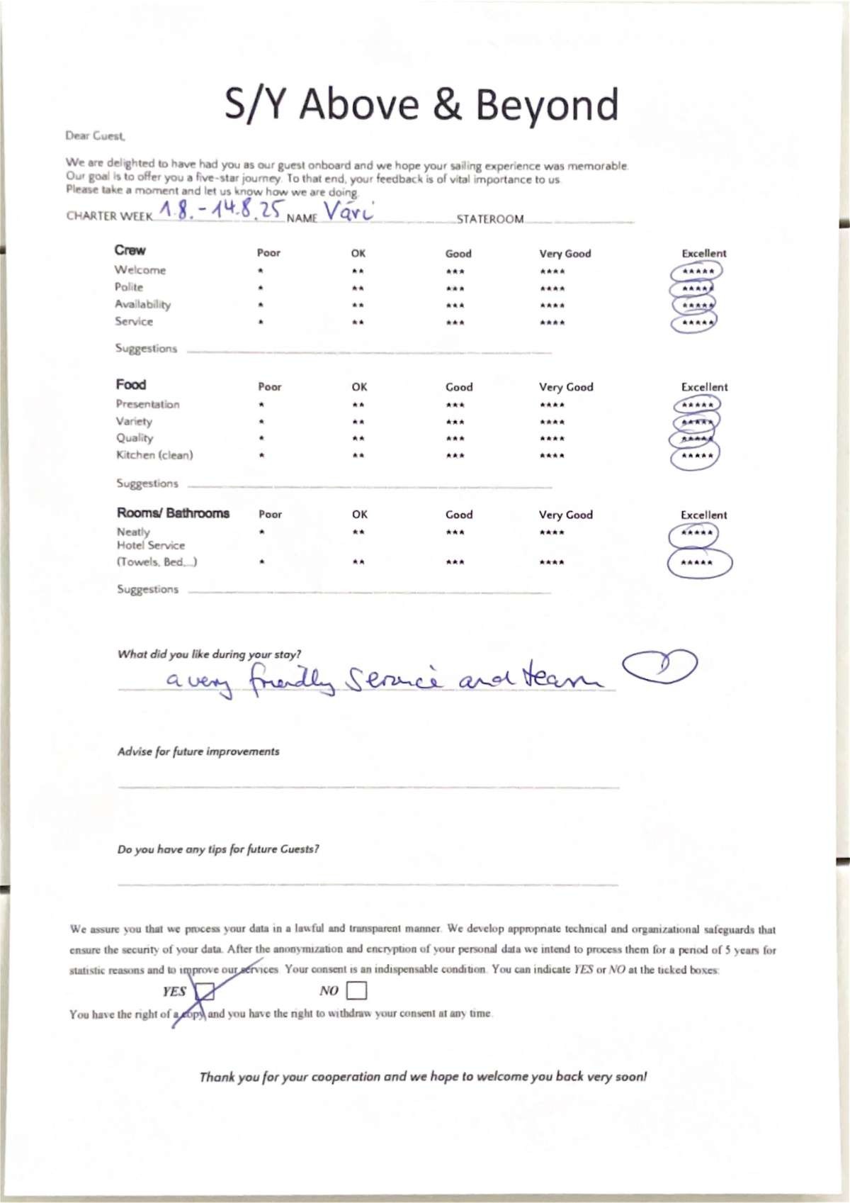 Poly brings a wealth of hospitality experience to the Above & Beyond crew, having spent the last three seasons as a hostess on motor yachts. In the winter months, she honed her skills as a head waitress and shift responsible in Athens' bustling restaurant scene. Prior to her yachting career, Poly worked in various hotels, learning everything there is in hotel service, and refining her customer service expertise. Armed with a Le Monde certificate in Food & Beverage Management from Athens, she is adept at ensuring seamless guest experiences and satisfaction. She is efficient, organized, a team player and adaptable. Fluent in both Greek and English, Poly's versatile communication skills and extensive background in hospitality make her a valuable asset aboard Above & Beyond for the upcoming season.