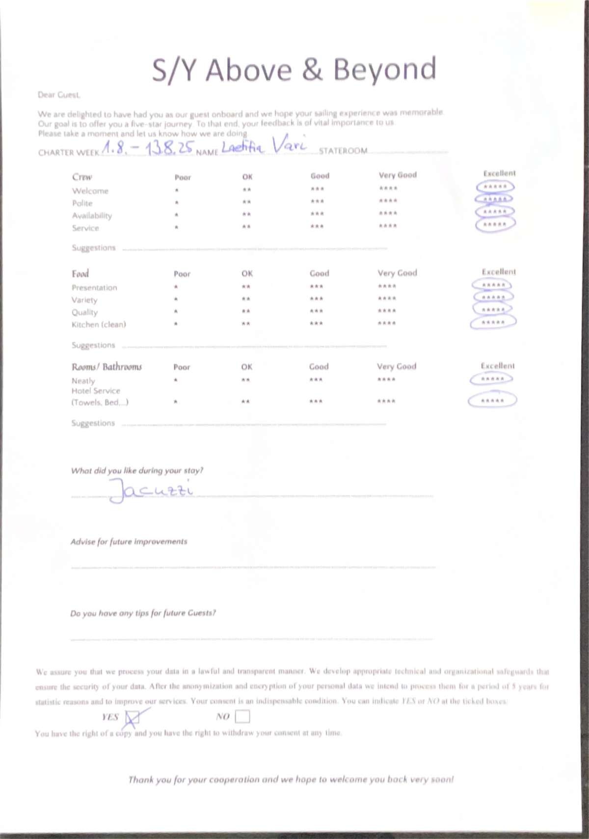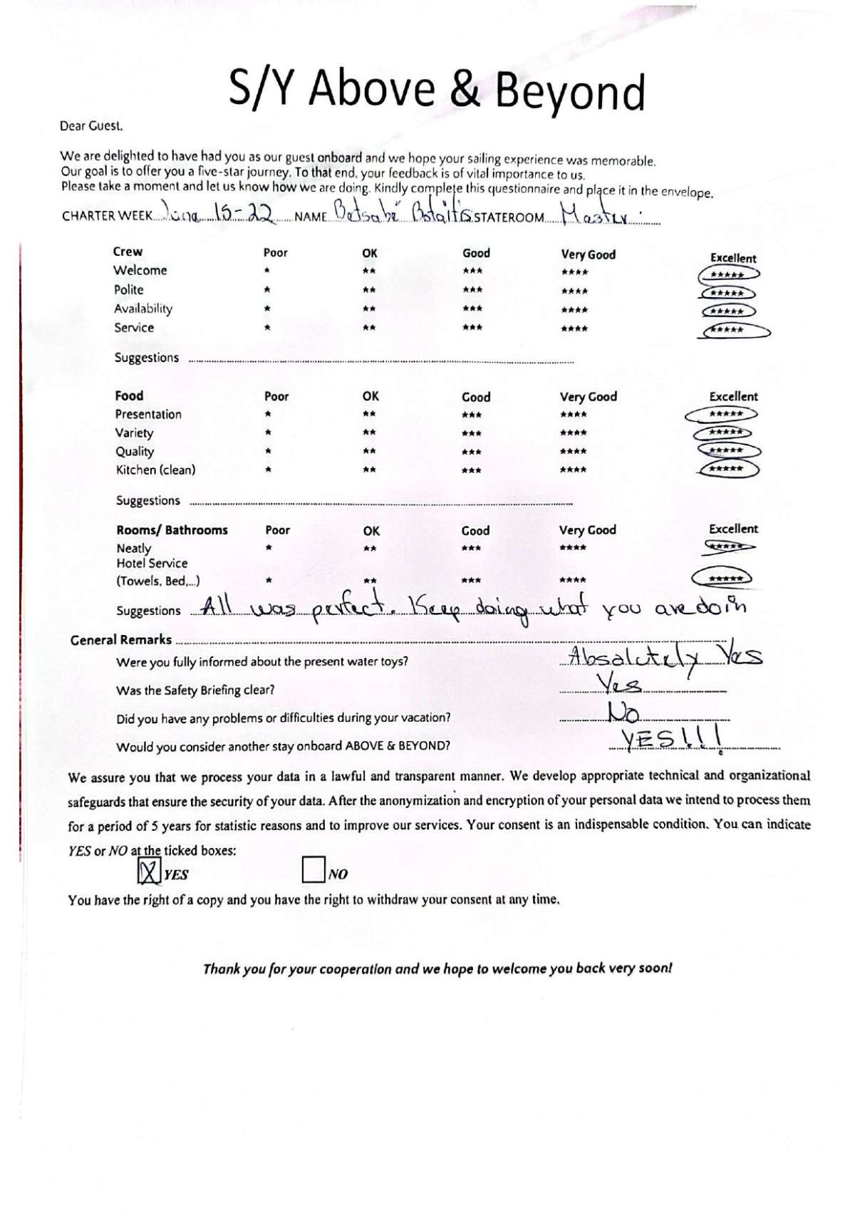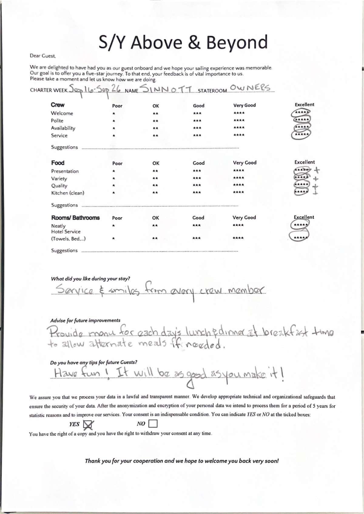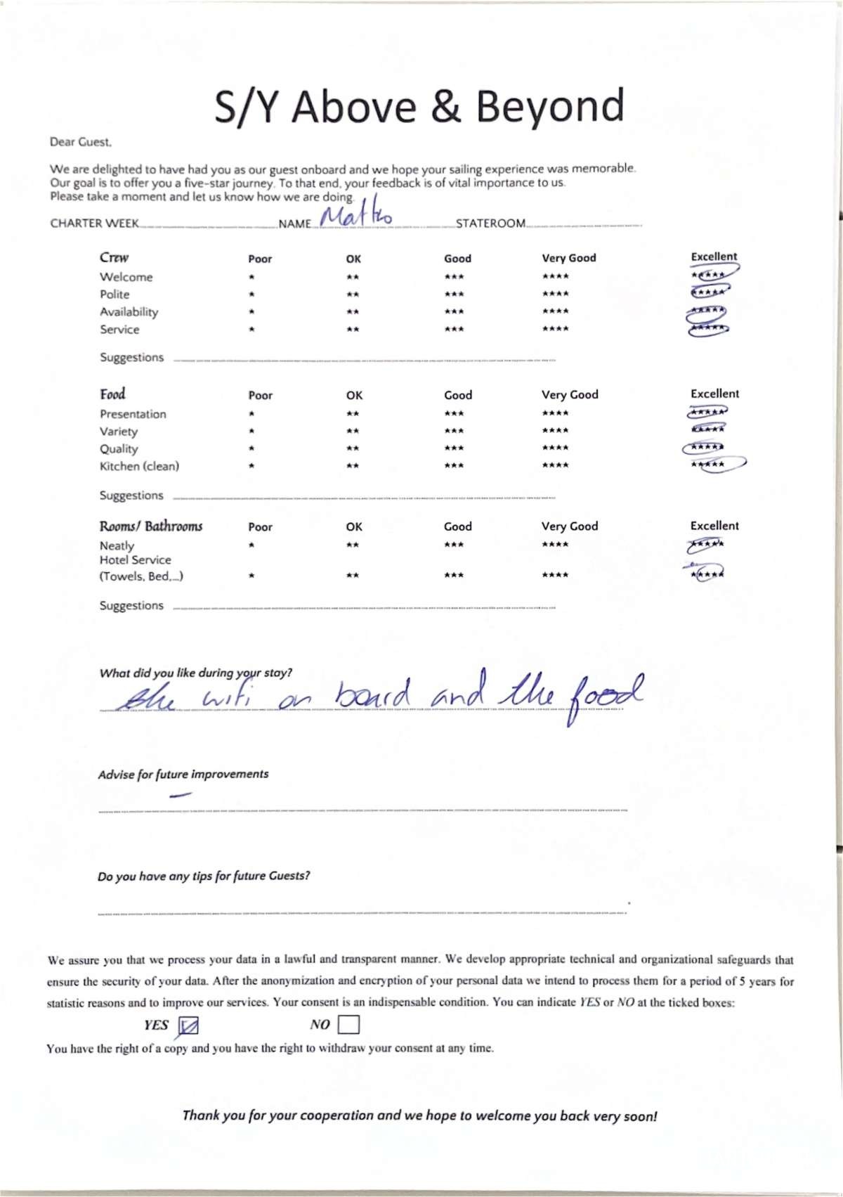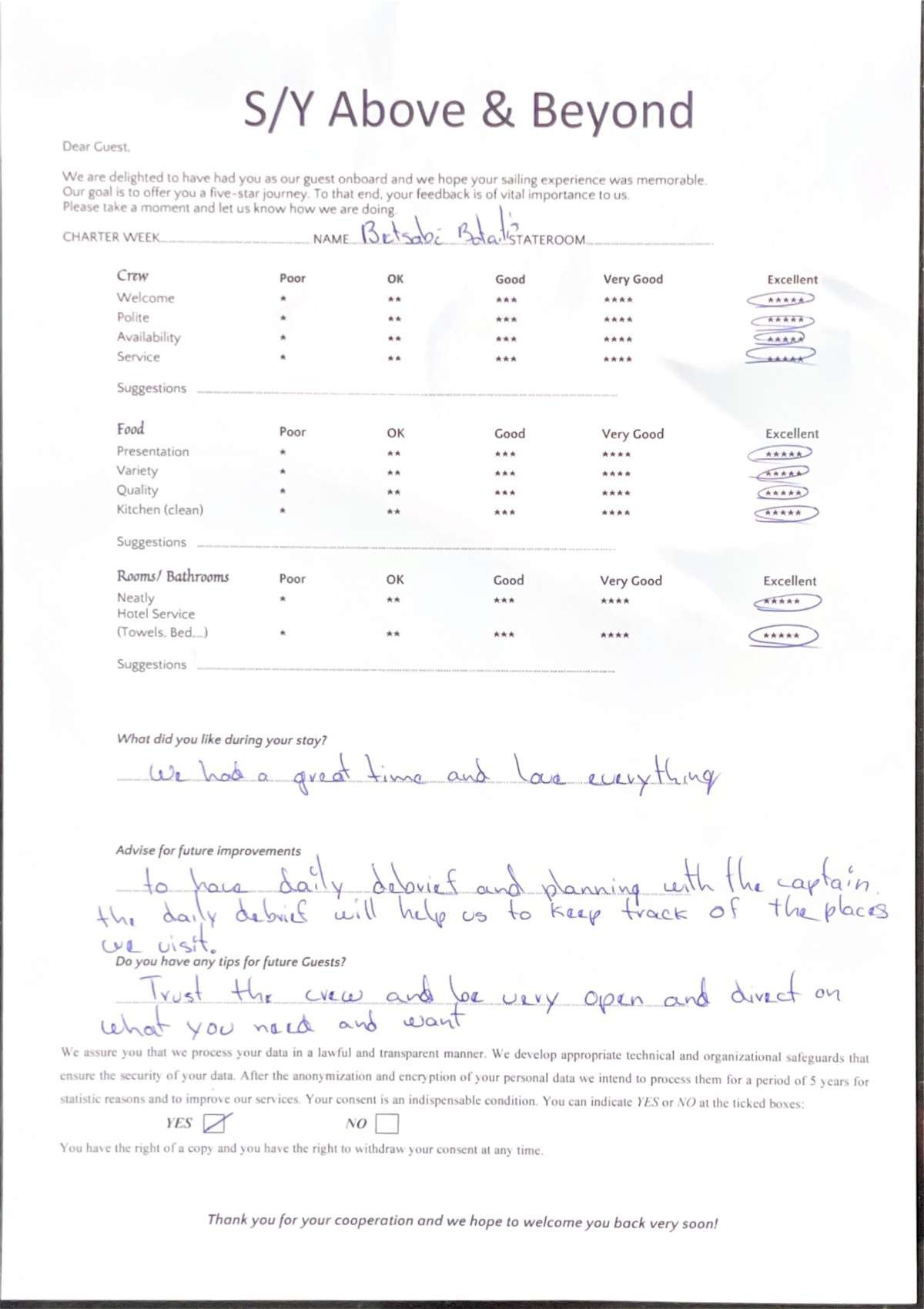 Poly brings a wealth of hospitality experience to the Above & Beyond crew, having spent the last three seasons as a hostess on motor yachts. In the winter months, she honed her skills as a head waitress and shift responsible in Athens' bustling restaurant scene. Prior to her yachting career, Poly worked in various hotels, learning everything there is in hotel service, and refining her customer service expertise. Armed with a Le Monde certificate in Food & Beverage Management from Athens, she is adept at ensuring seamless guest experiences and satisfaction. She is efficient, organized, a team player and adaptable. Fluent in both Greek and English, Poly's versatile communication skills and extensive background in hospitality make her a valuable asset aboard Above & Beyond for the upcoming season.