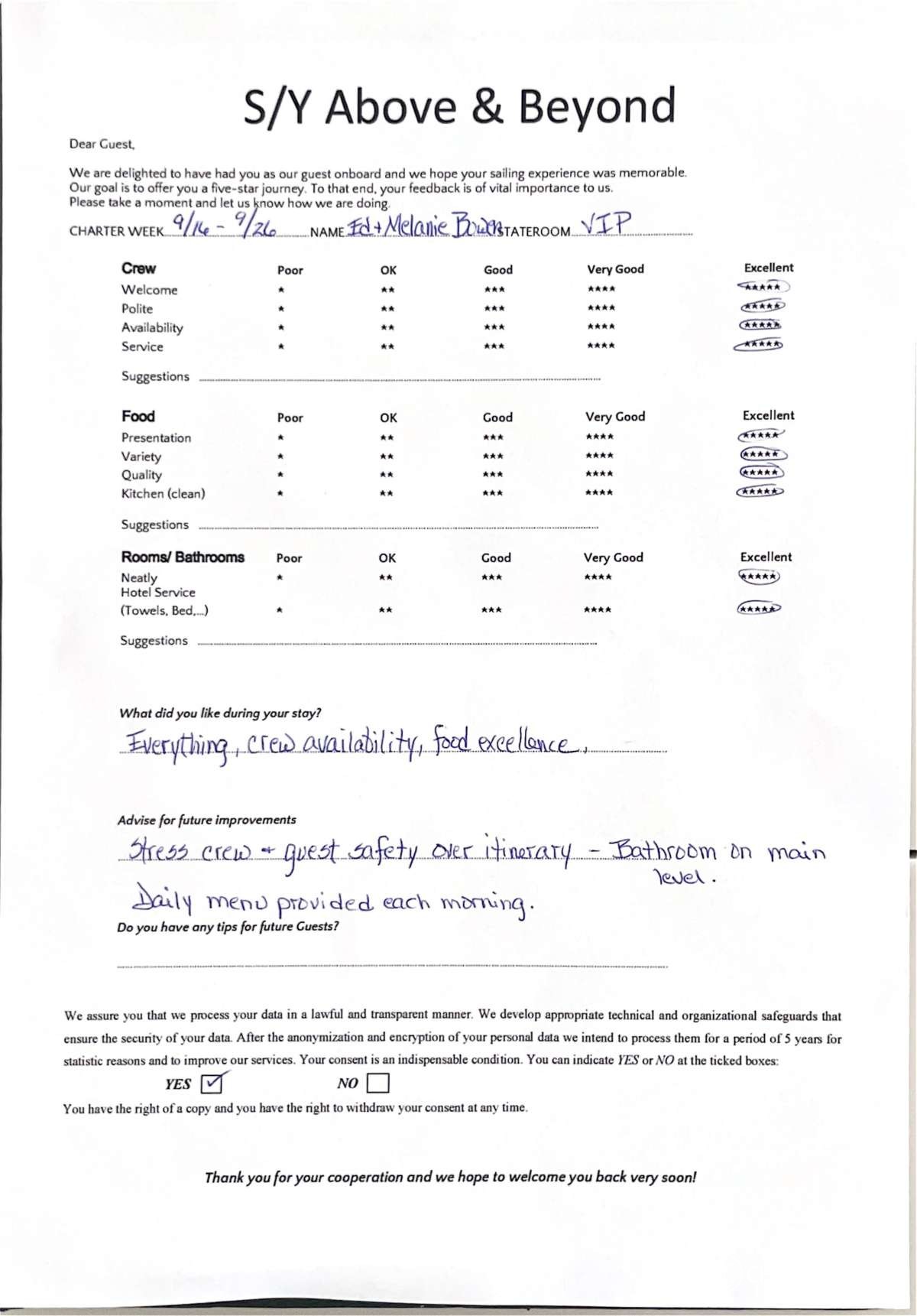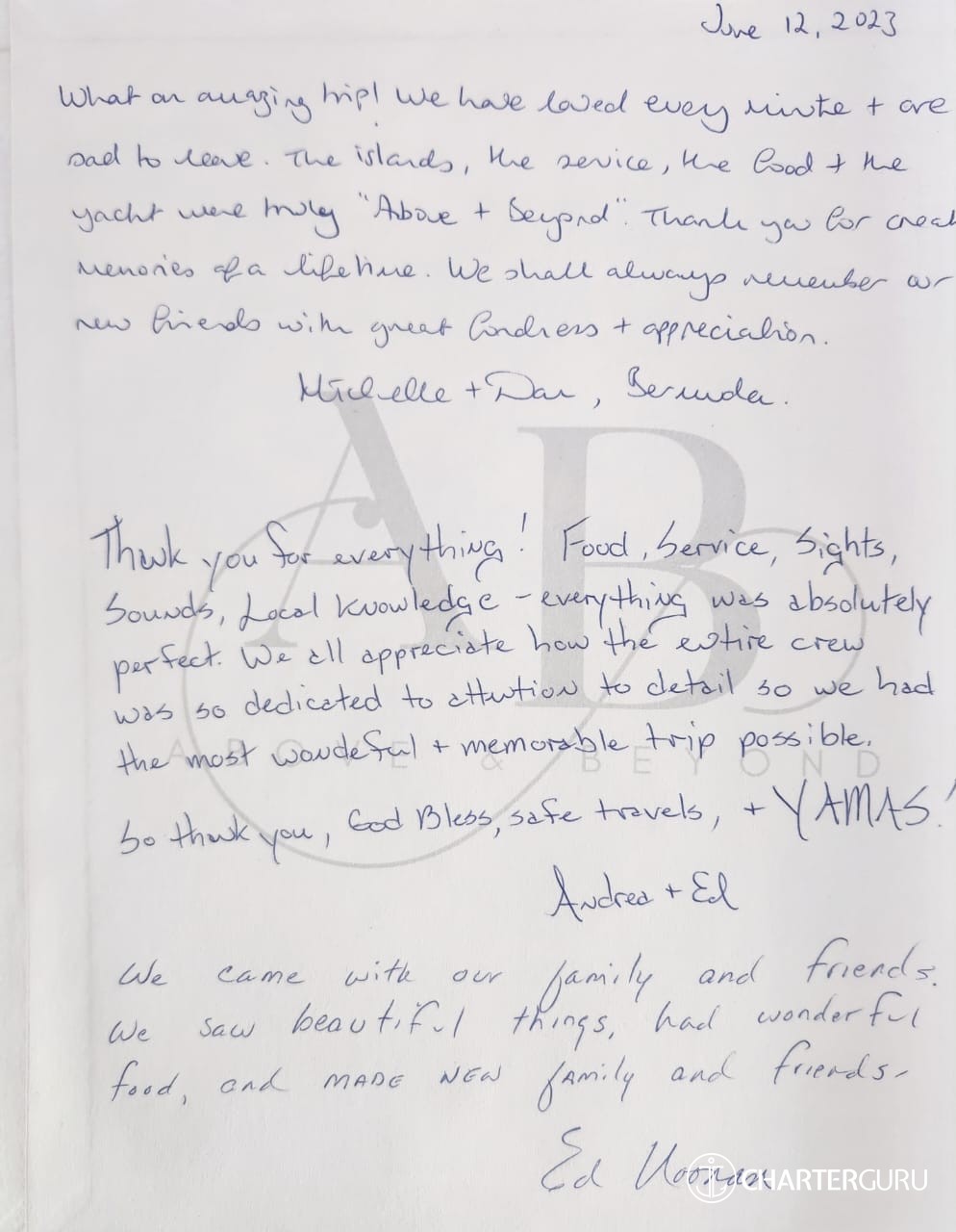 | # of charter days | Base Price | APA (deposit for provisioning, fuel, docking fees, etc) | Total | Note | |