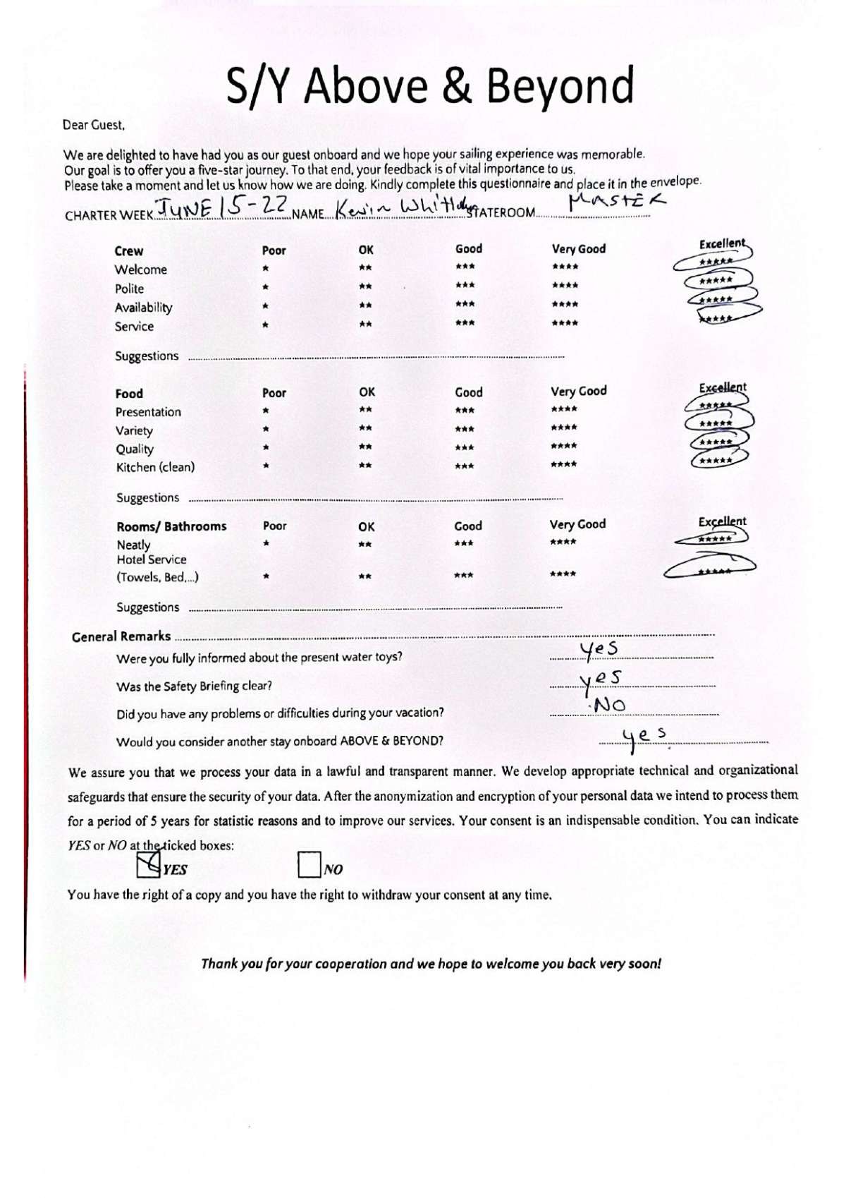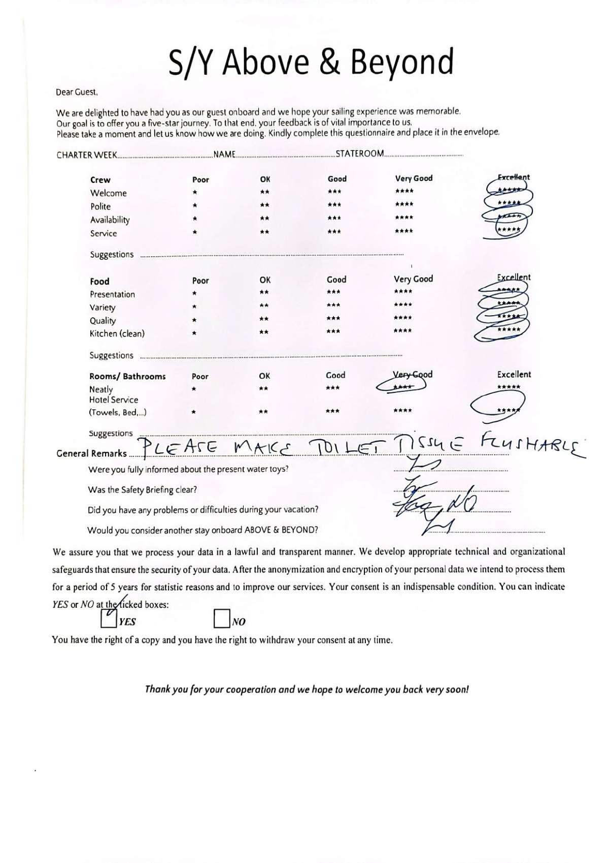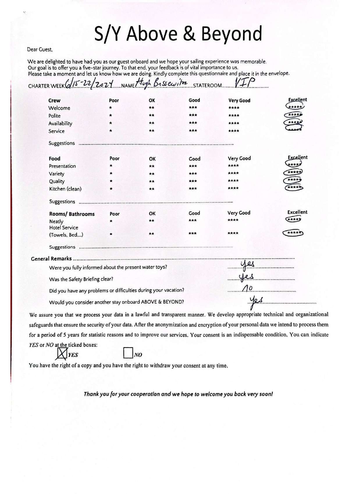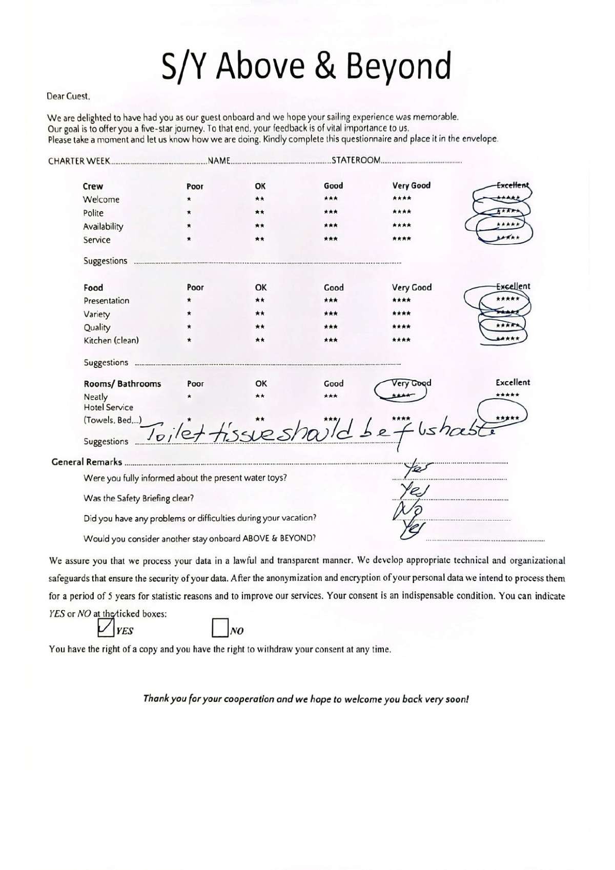 The expenses, such as provisioning, fuel, marina fees, are deducted from the APA. The APA is based on the price of the yacht and ranges from 15% (crewed sailing yachts) to 30% (motor yachts with higher fuel consumption).