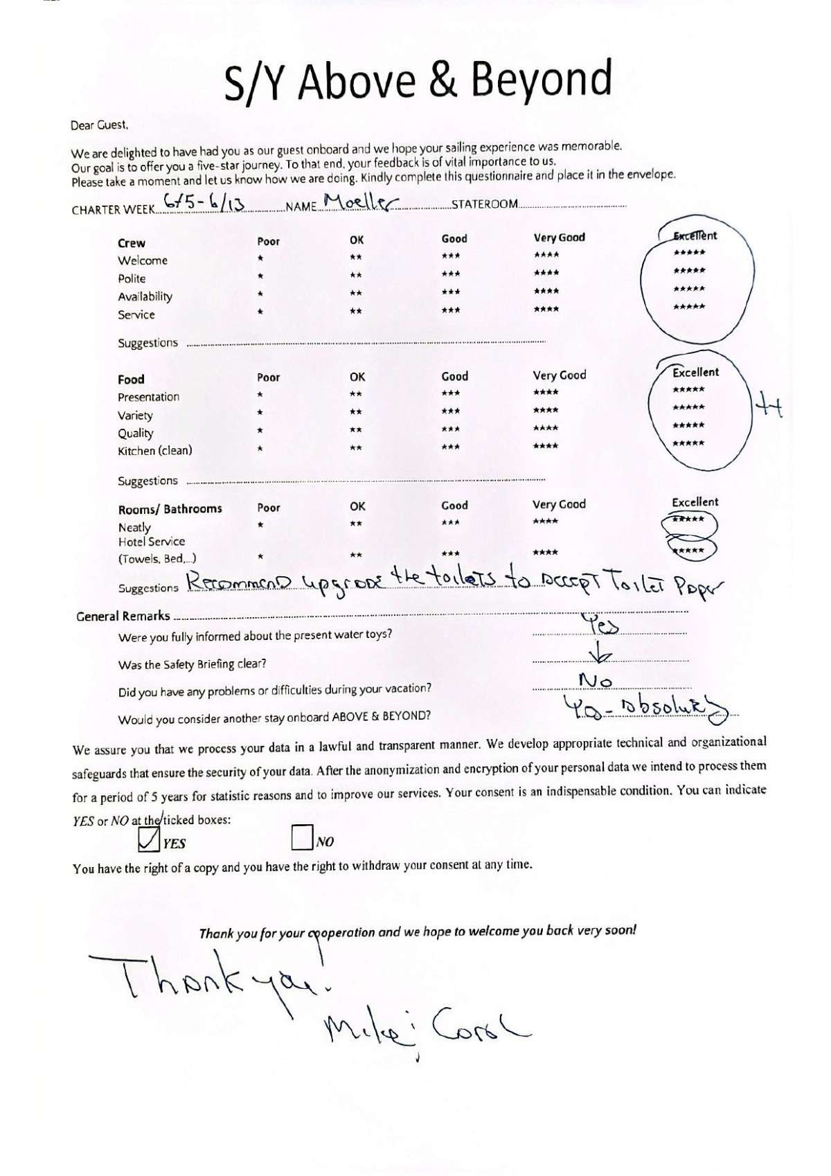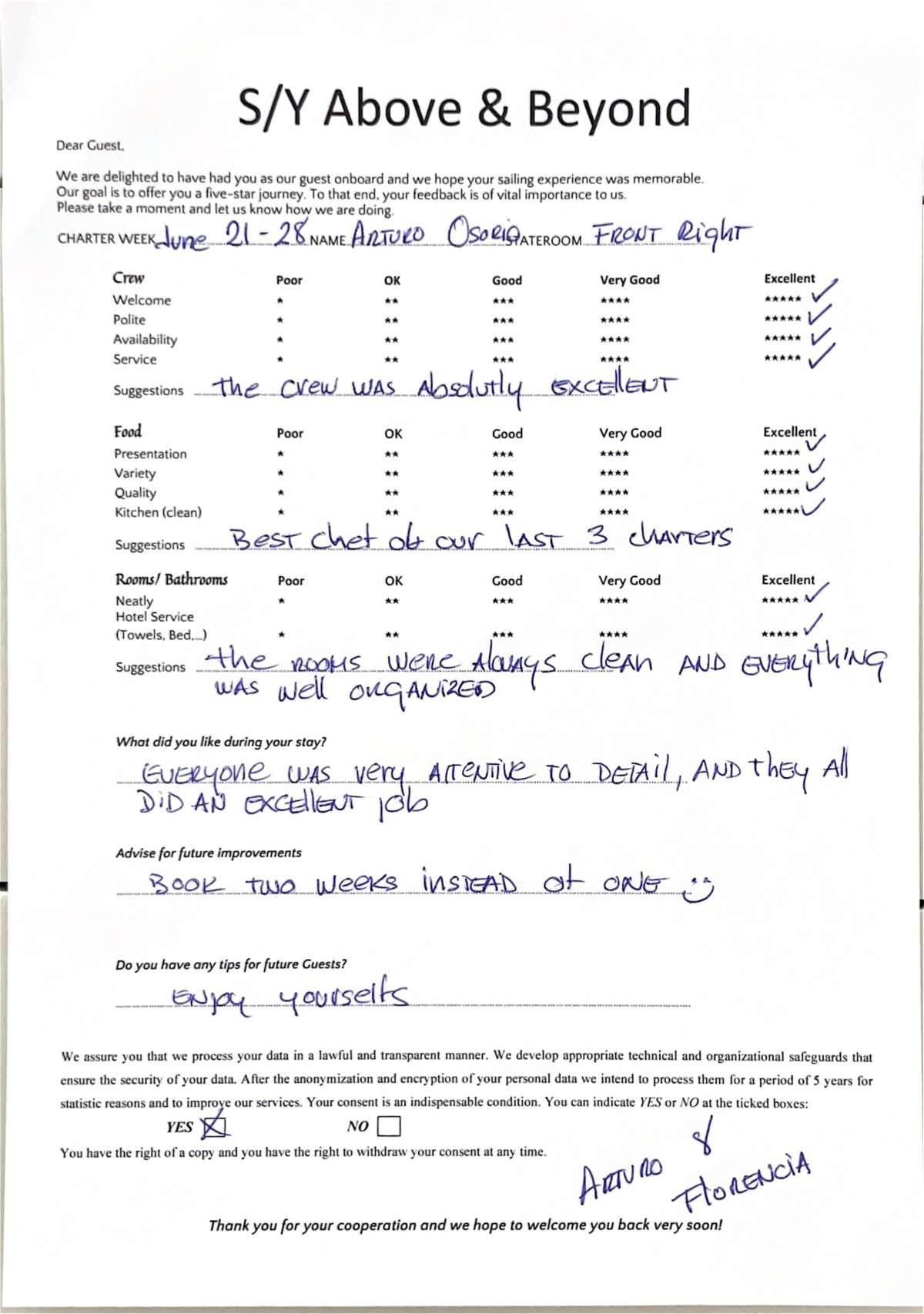 Mid Season: Euro 67000 per week (May 1st - June 14th and Sept 16th - Oct 31st)