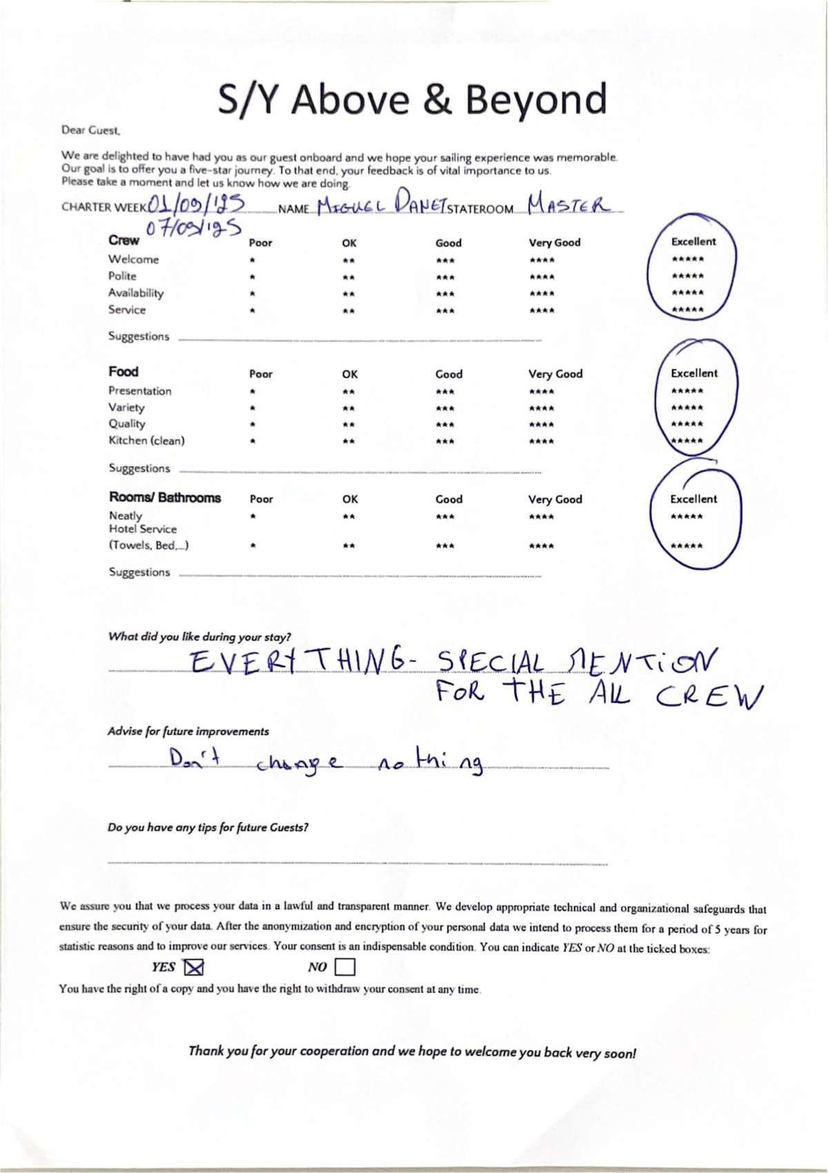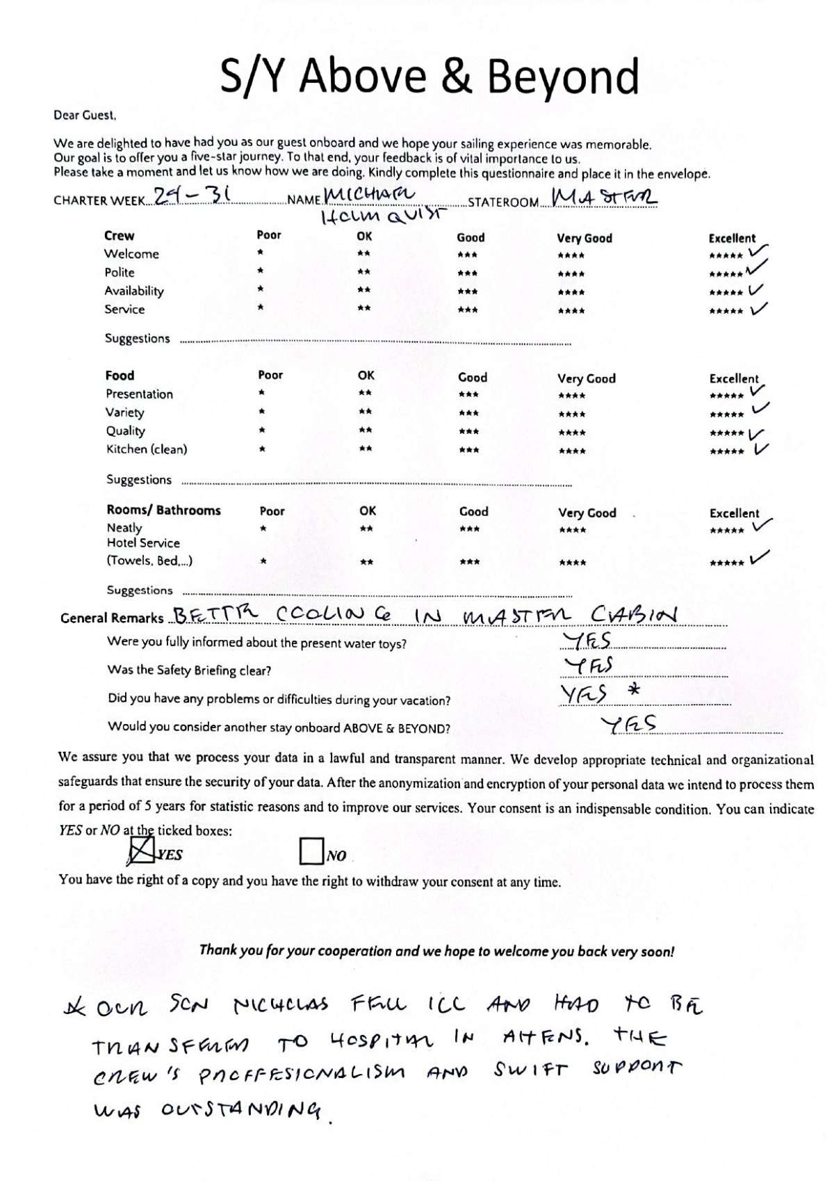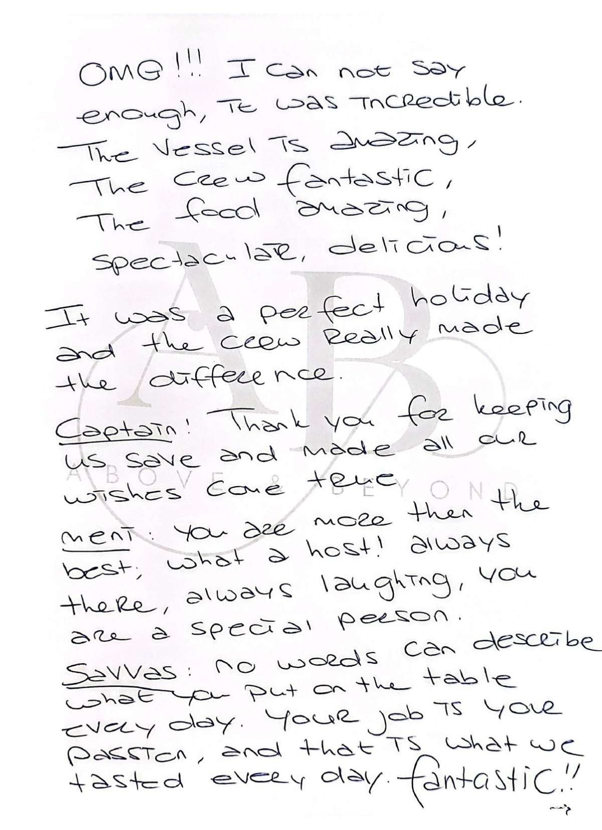 Captain Andreas is a seasoned yacht captain with a wealth of experience navigating everything from luxury motor yachts to sailing catamarans. His journey began in 2004 when he stepped in as a deckhand on M/Y Lady Dana and quickly worked his way up to be a Captain. Over the years, he’s captained a variety of vessels, including a 31m steel yacht, a 585 Privilege Sailing Catamaran, and a San Lorenzo 88, always with an unwavering commitment to safety and excellence. After taking a few years off for family time, Andreas returned to the industry in 2024, eager to bring his expertise back to the seas. Born in Cyprus, raised in Saudi Arabia, and later in Greece, Andreas’s international background gives him a unique perspective and a steady hand as Captain aboard Above & Beyond.