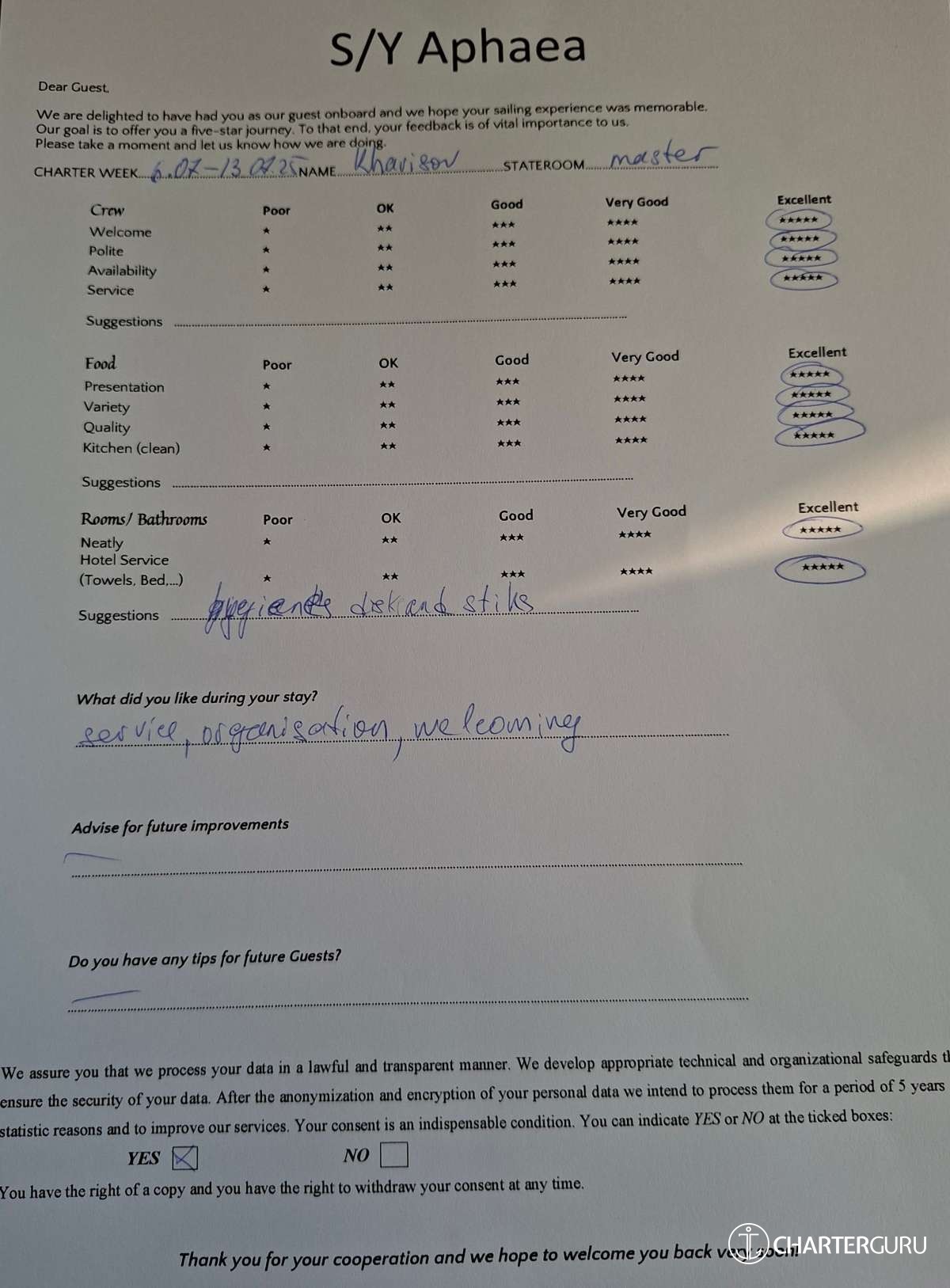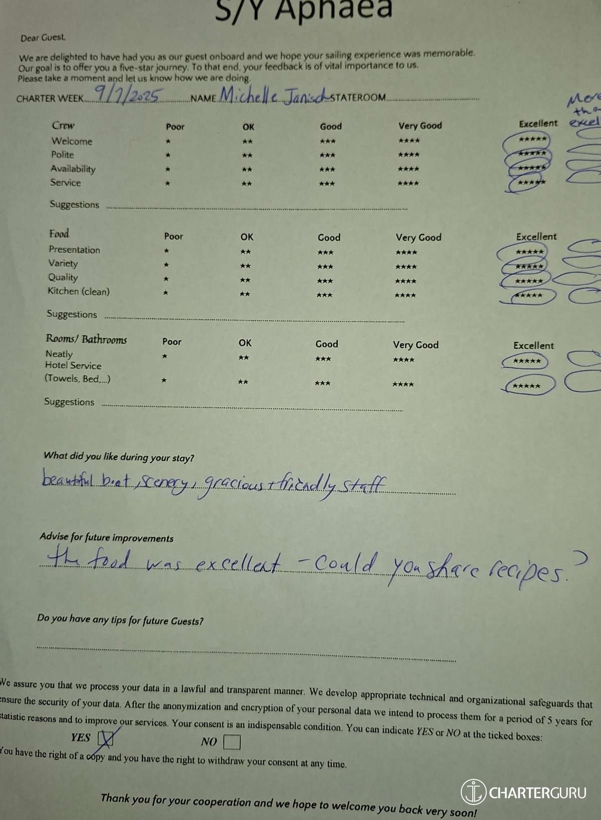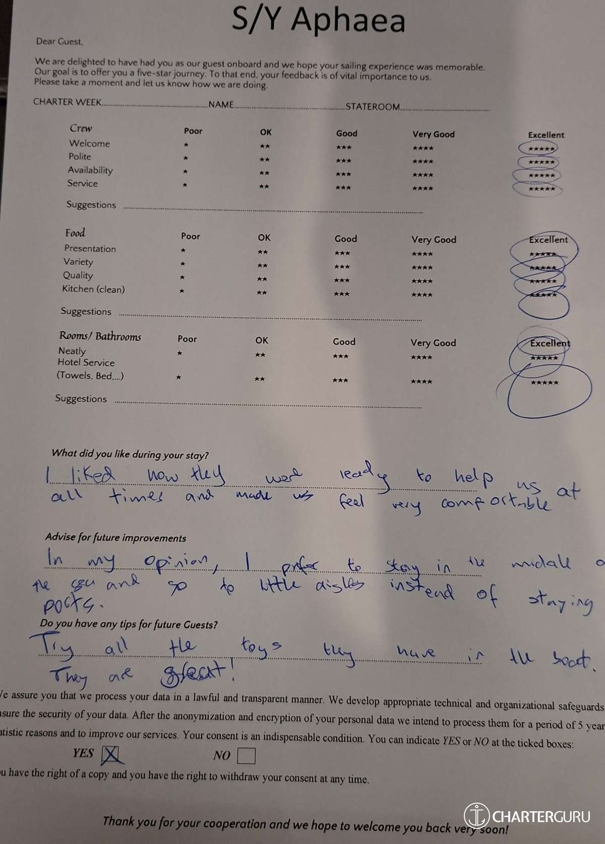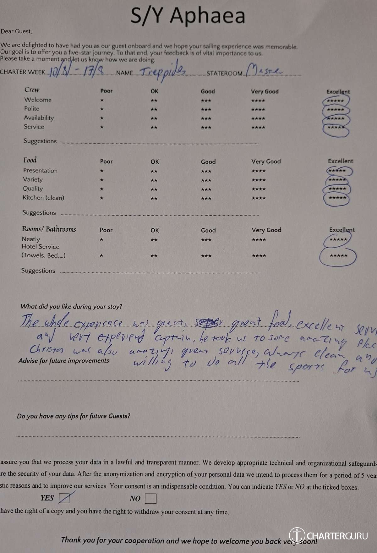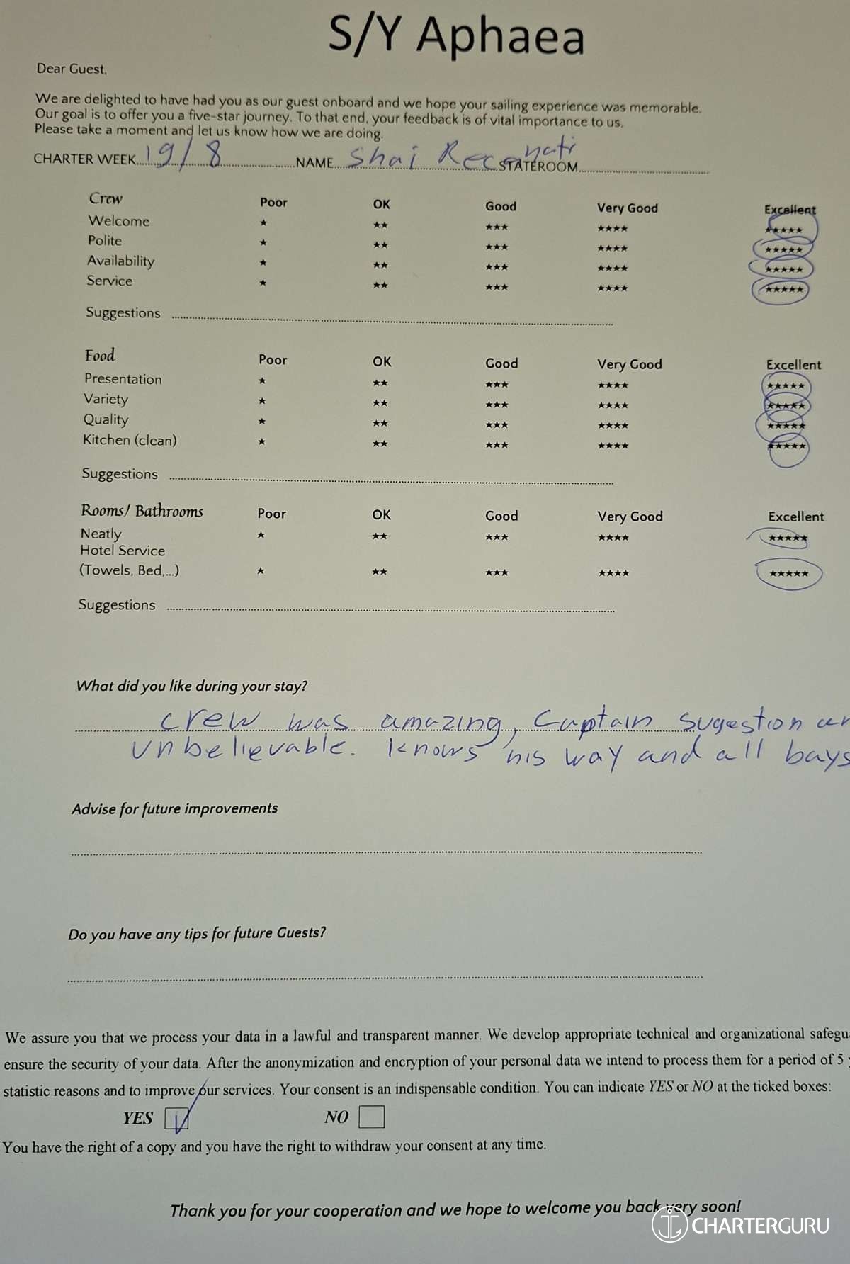 Your yachting experience is elevated by Captain Michalis' affable nature, fluency in both English and Spanish, and effective communication in both languages. Notably, his exceptional rapport with children adds an extra layer of warmth to the journey. Trust in Captain Michalis to guide you through a comfortable and welcoming vacation on the seas.