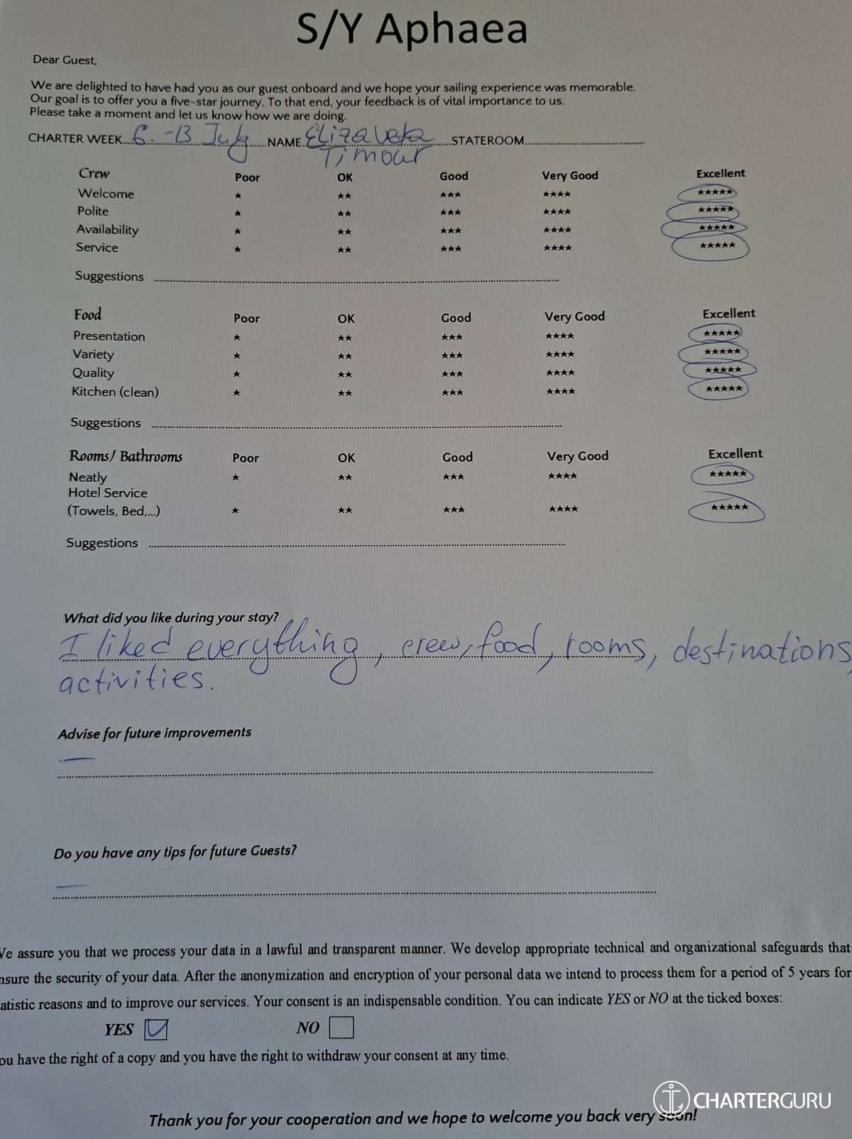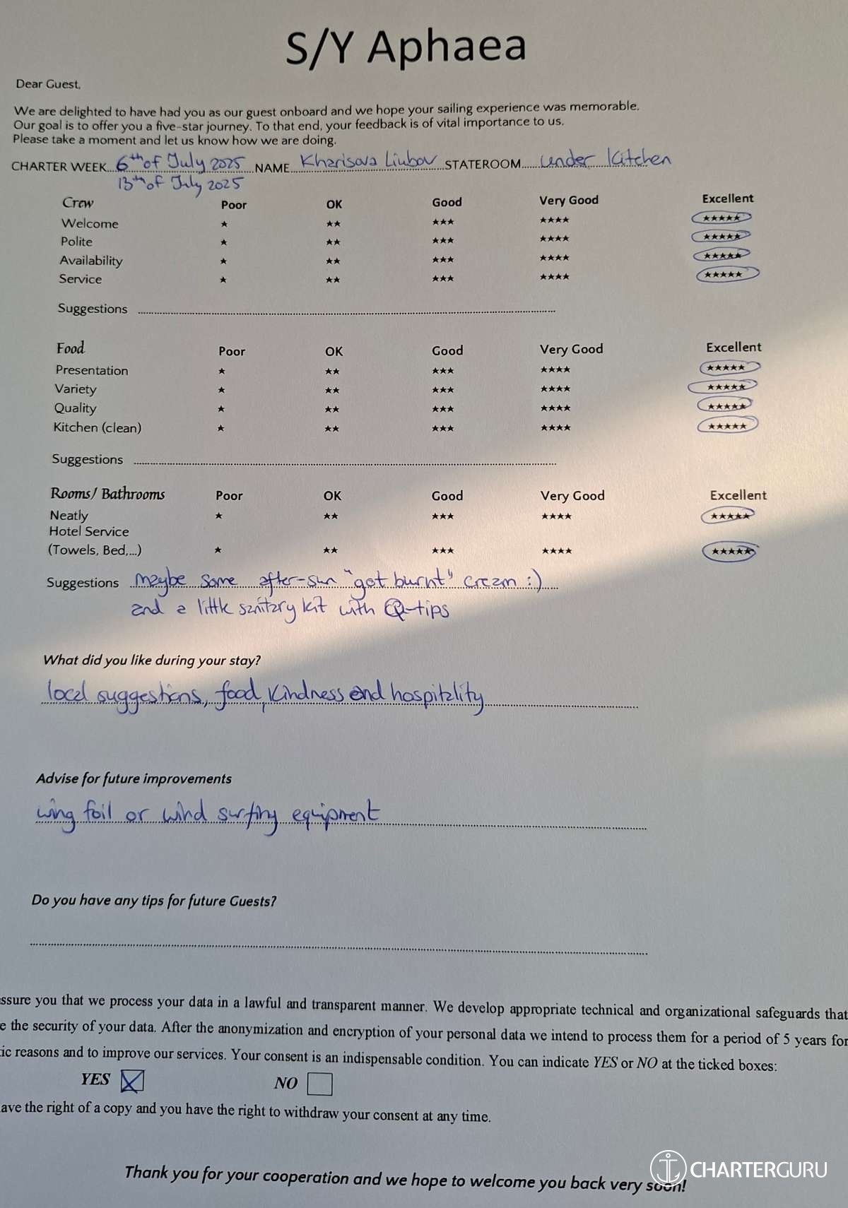 Christos, born in 2000, infuses a blend of sailing enthusiasm and diverse skill sets into his role as a deckhand/stewardess aboard Aphaea. Prior to entering the yachting industry last year, he spent five years honing his customer service finesse as a barista in various cafeterias, while concurrently working as a lifeguard. Fluent in Greek and English, Christos seamlessly communicates with crew and guests alike, adapting easily to different backgrounds and guest preferences. He is a team player, a fast learner and knows hospitality inside out! His passion for adrenaline-fueled activities, including kickboxing, soccer, snowboarding, swimming, freediving (spearfishing), hiking, and horse-riding, reflects his adventurous spirit and unwavering determination. With each task, whether it's tending to deck duties, serving meals or ensuring guest safety, Christos's commitment to excellence shines through, making him an indispensable asset to the Aphaea team.