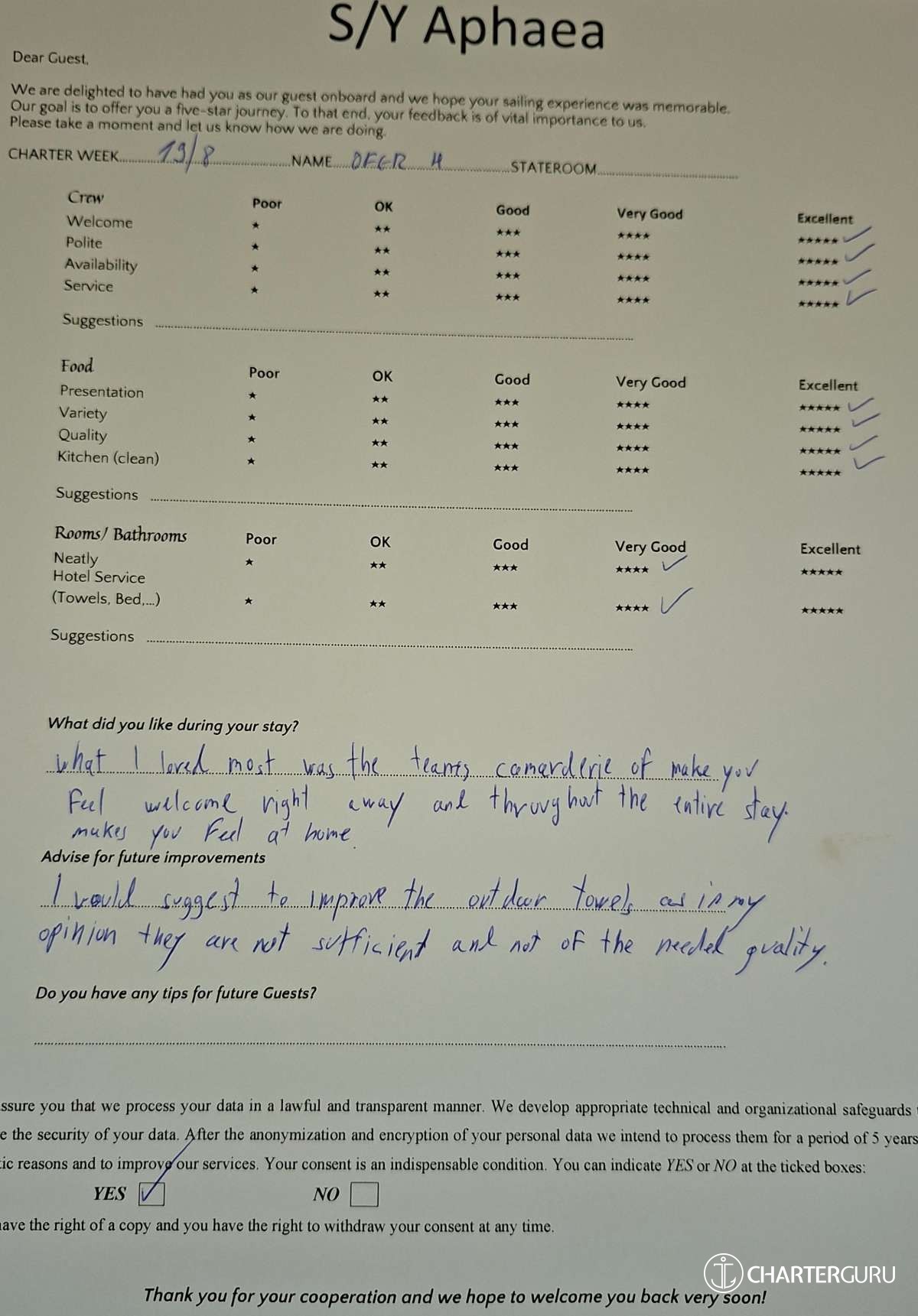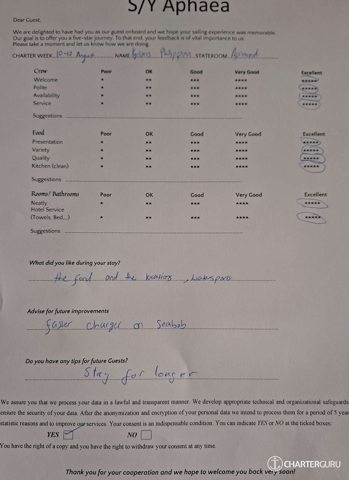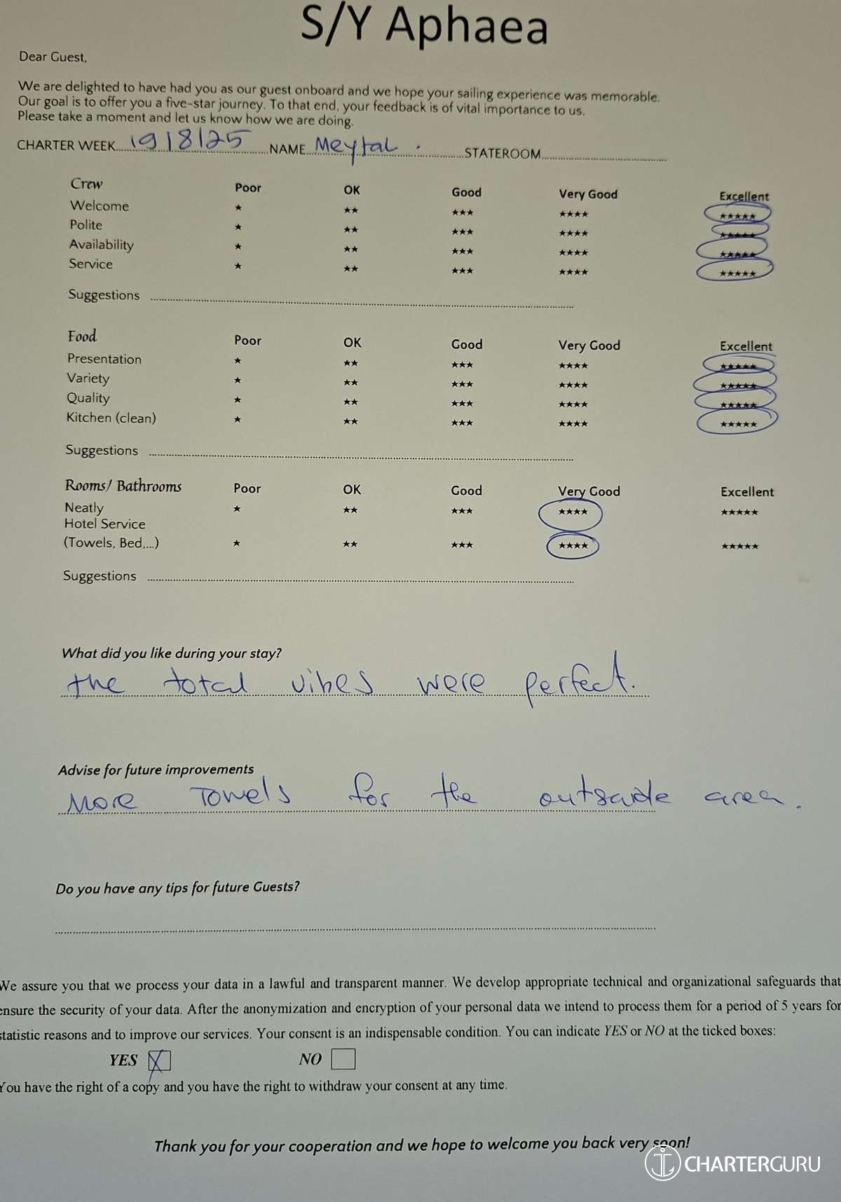 A dedicated crew of three—captain, chef, and hostess—stands ready to provide exceptional service and craft a seamless, indulgent experience tailored to every guest’s desires. Combined with her wide range of water toys, APHAEA ensures endless fun, comfort, and relaxation.