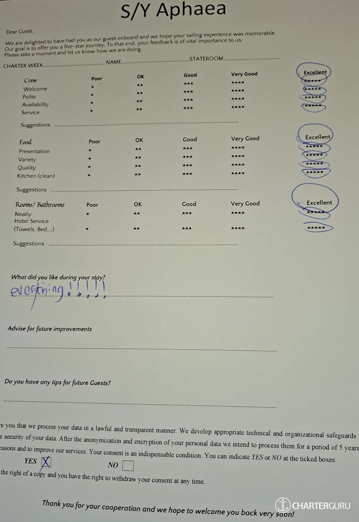 The expenses, such as provisioning, fuel, marina fees, are deducted from the APA. The APA is based on the price of the yacht and ranges from 15% (crewed sailing yachts) to 30% (motor yachts with higher fuel consumption).