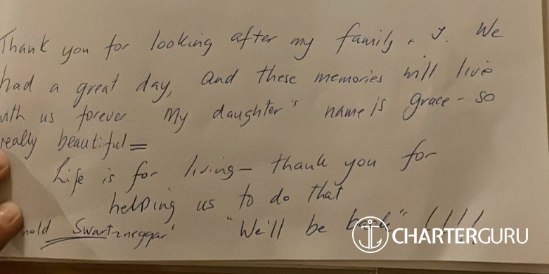 Use of jet ski and towable water toys is at the captain’s discretion, taking into account location, weather, traffic, and the guest’s physical condition.