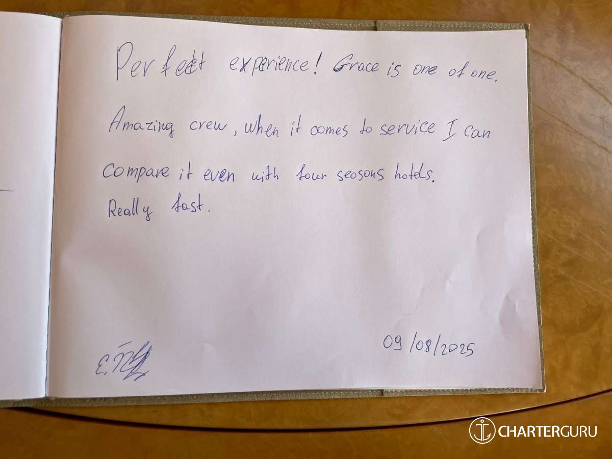 With Captain Panos at the helm of Grace, guests can expect an extraordinary journey filled with breathtaking destinations and impeccable service.