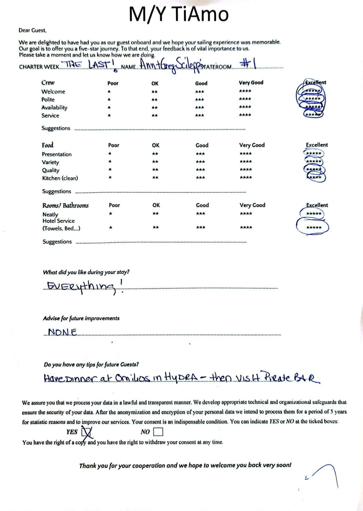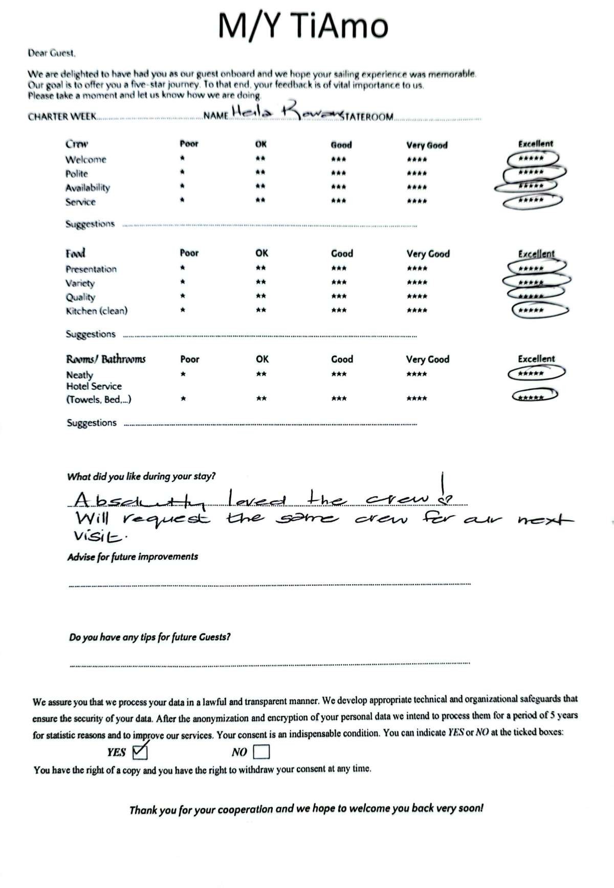 M/Y TiAmo is proudly operated by an all-female crew of three, known for their professionalism, warmth, and attention to detail. From personalized itineraries to exquisite dining and seamless service, they ensure every guest feels cared for and every moment becomes a cherished memory.