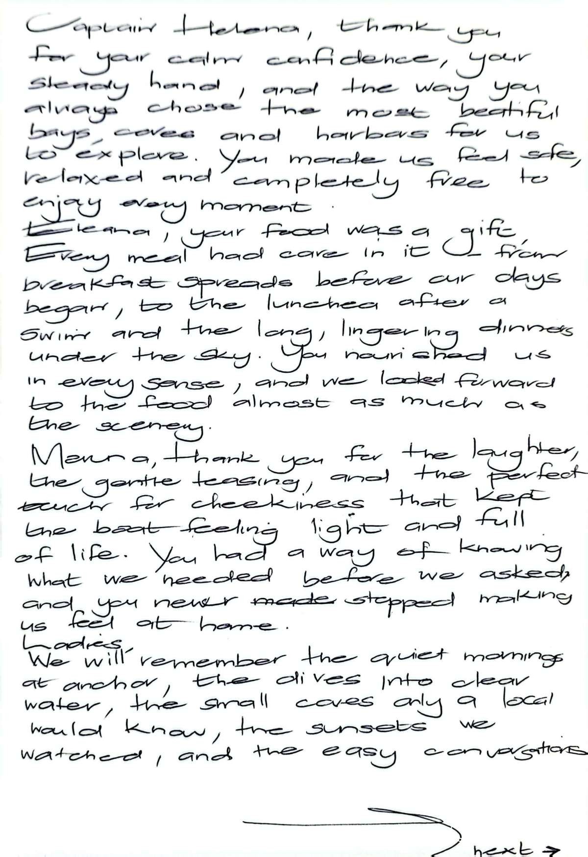 Beyond her culinary expertise, Iliana is a seasoned barista and bartender, adding a delightful touch to the onboard experience. Fluent in English, she ensures seamless communication with guests from different backgrounds.